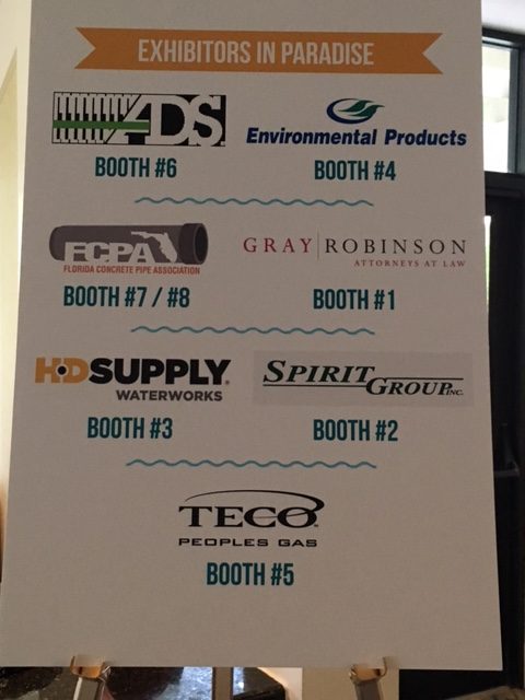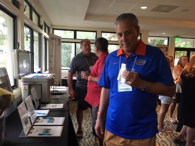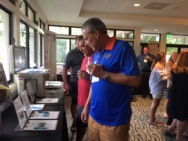 The Clays, Petticoat- Schmitt, speak with Exhibitor Environmental Products of Florida during Networking Reception.