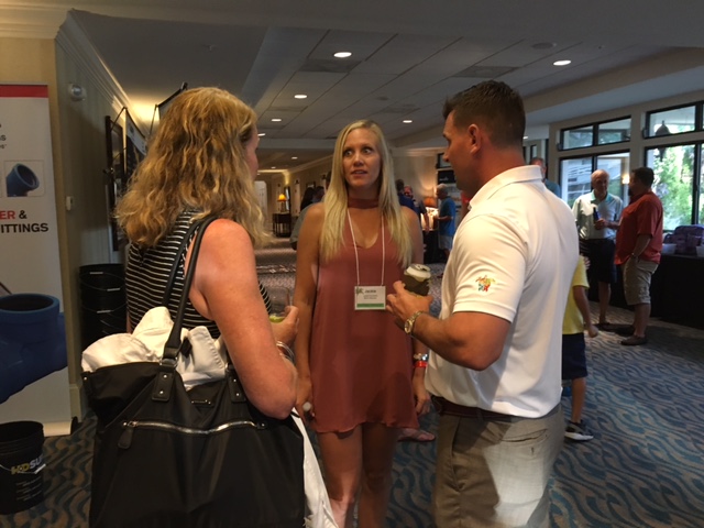 Conference chair Chris Stewart networks with past-president Mike Woodall, JWI, Inc. as Mike’s daughter Brooke Woodall listens.