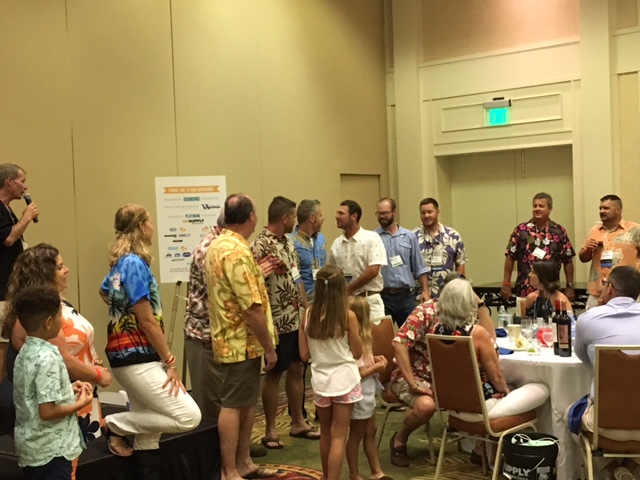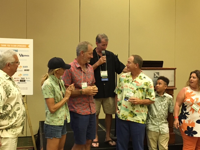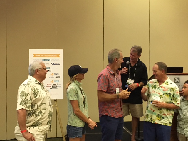 Platinum sponsor Curt Hinson, HD Supply is flanked by Larry Falls, ACP & Rick Pfaffendorf, Advanced Drainage Systems.